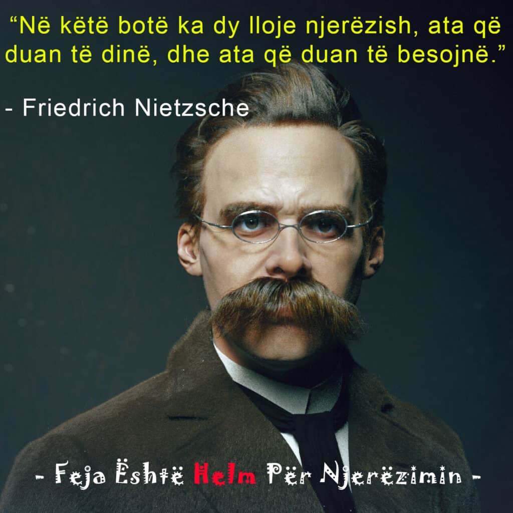 Postime Do të dish apo do të besosh? Të dyja nuk bëhen ByAdmin September 14, 2022October 10, 2024 nietzsche“Në këtë botë ka dy lloje njerëzish, ata që duan të dinë dhe ata që duan të besojnë.” – Friedrich Nietzsche